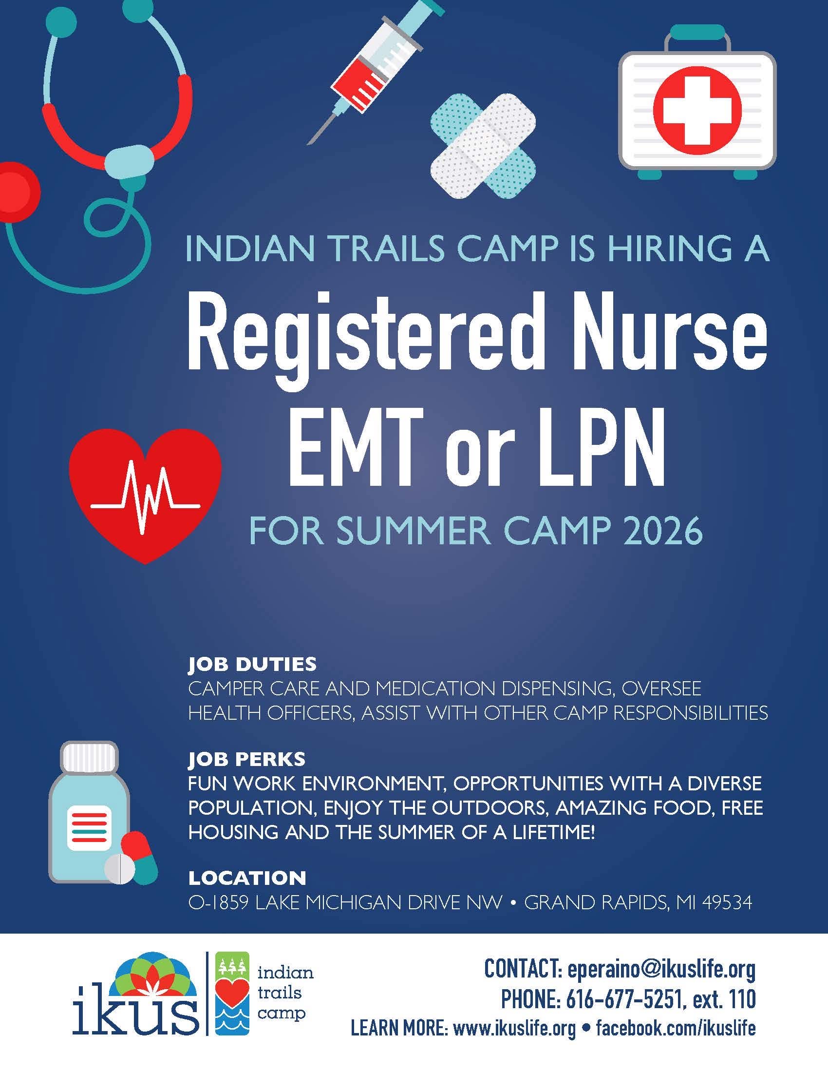 Looking for a summer job that truly matters? Indian Trails Camp in West Michigan is seeking a Camp Nurse to support individuals with disabilities at our summer camp. It's an amazing opportunity to use your skills, spend summer in the outdoors, and be part of something truly special. Details can be found in the attached flyer!